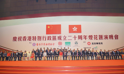 7月1日,應(yīng)香港回歸二十周年組委會、香港民政事務(wù)局、香港廣東社團總會、香港中國商會的邀請,新華聯(lián)集團總裁傅軍出席了在香港會議展覽中心舉行的慶祝香港特別行政區(qū)回歸二十周年酒會暨煙花匯演晚會。